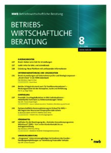 Den Original-Beitrag in der “NWB Betriebswirtschaftliche Beratung” können Abonnenten hier lesen und kostenlos herunterladen. Interessenten haben die Möglichkeit, die Zeitschrift inkl. Datenbank 4 Wochen gratis zu testen und ein Probeheft zu bestellen.