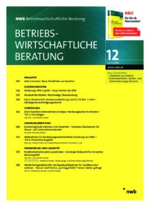 Den Original-Beitrag in der "NWB Betriebswirtschaftliche Beratung" können Abonnenten hier lesen und kostenlos herunterladen. Interessenten haben die Möglichkeit, die Zeitschrift inkl. Datenbank 4 Wochen gratis zu testen und ein Probeheft zu bestellen.