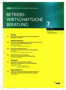 Den Original-Beitrag in der “NWB Betriebswirtschaftliche Beratung” können Abonnenten hier lesen. Interessenten haben außerdem die Möglichkeit, die Zeitschrift inkl. Datenbank 4 Wochen gratis zu testen und ein Probeheft zu bestellen.