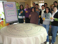 Zusammengefasst wurden Ziele, Maßnahmen und Wünsche auf einer „strategischen Tischdecke“. Das Führungsteam gab sich ein Projektmotto „Gemeinsam – Yes we can“.