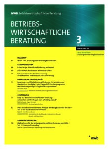 Den Original-Beitrag in der "NWB Betriebswirtschaftliche Beratung" können Abonnenten hier lesen und kostenlos herunterladen. Interessenten haben die Möglichkeit, die Zeitschrift inkl. Datenbank 4 Wochen gratis zu testen und ein Probeheft zu bestellen.