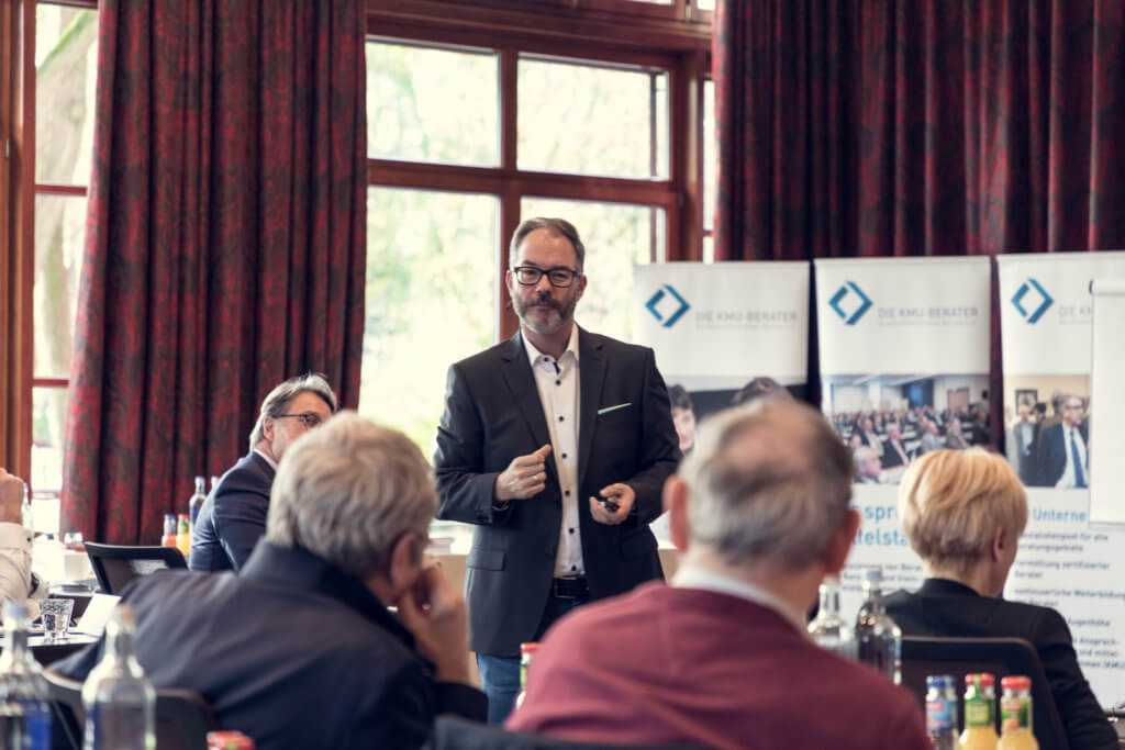 Im Anschluss daran hatten die Teilnehmer die Qual der Wahl zwischen dem Workshop von Erhard Stammberger, „Sinus-Milieus®“ zur Zielgruppenbestimmung für das Marketing von KMU” und dem Workshop von Edmund Cramer, “Digitalisierung für Berater”. Edmund Cramers Vortrag mündete in die These, dass die Digitalisierung in der Mittelstandsberatung nicht die reine Beratung ersetzen, sondern eher in vor- und nachgelagerten Services starten wird.